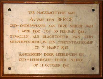 Vanaf 1942 bood het gezfn onderdak aan Joodse onderduikers, een echtpaar en een baby van elders ondergedoken ouders. Het ging goed tot februari 1944. Abraham werd tegelijk met het echtpaar gevangen genomen. Hij be[andde in het concentratiekamp Vught. Moeder Bets kreeg opdracht de baby fn bewaring te houden totdat ook die zou worden 'opgehaald'. Dat deed ze niet: ze zorgde ervoor dat de fllegaliteit het kind naar zijn eigen ouders terugbracht. Daardoor moest ze meteen zelf met haar drie eigen kinderen onderduiken; dat was in Den Haag. Na Dolle Dinsdag - 5 september 1944 - ontruimden de Duitsers het kamp Vught. Abraham is teen in Buchenwald terechtgekomen, waar hij op 7 maart 1945 is orngekomen. Zijn gezin heeft na de bevriJding nog gehoopt op ziJn terugkeer; op 4 Juni kwam echter het bericht dat hij niet meer leefde. Van het joodse echtpaar is niet bekend hoe het is afgelopen, maar zeer waarschijnlfjk zijn ze omgebracht. Met het gezin van de baby is na de oorlog nag contact geweest; de baby zelf is opgegroeid en uiteindelijk in Israel gaan wonen. In de Margrietschool aan de Johan Messchaertstraat is in 1947 een gedenkplaat voor hem aangebracht (foto).